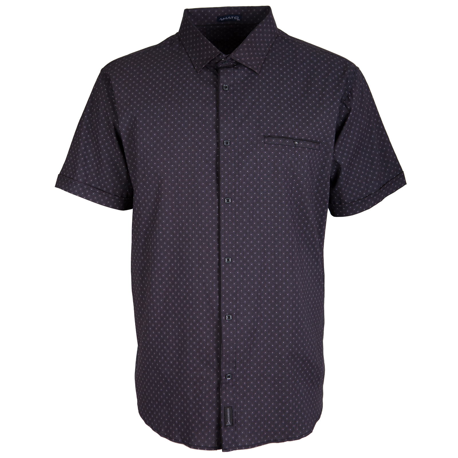 Рубашка Amato с коротким рукавом, черного цвета. Состав: 95% хлопок, 5% лайкра.