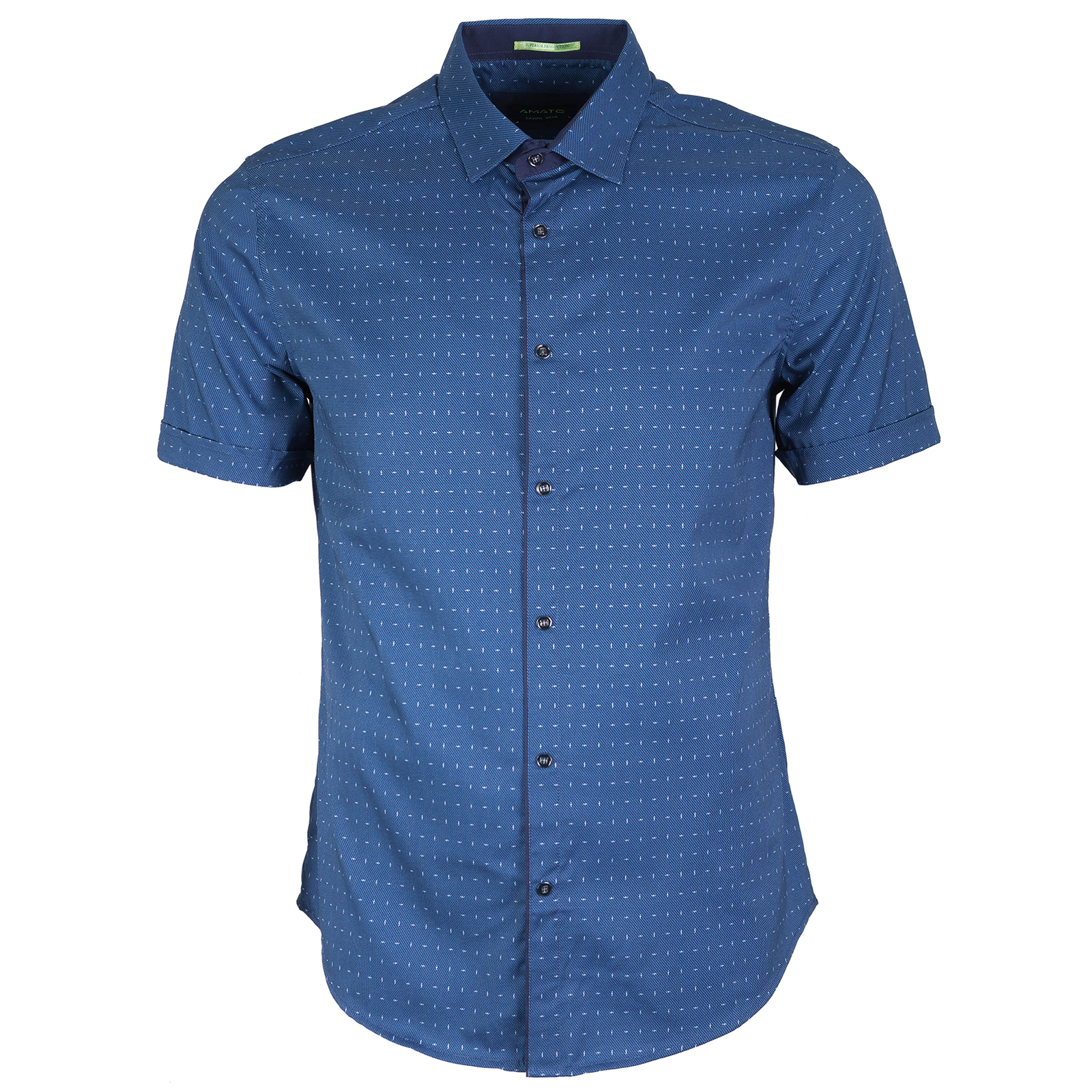 Рубашка Amato с коротким рукавом, синего цвета. Состав: 95% хлопок, 5% лайкра.